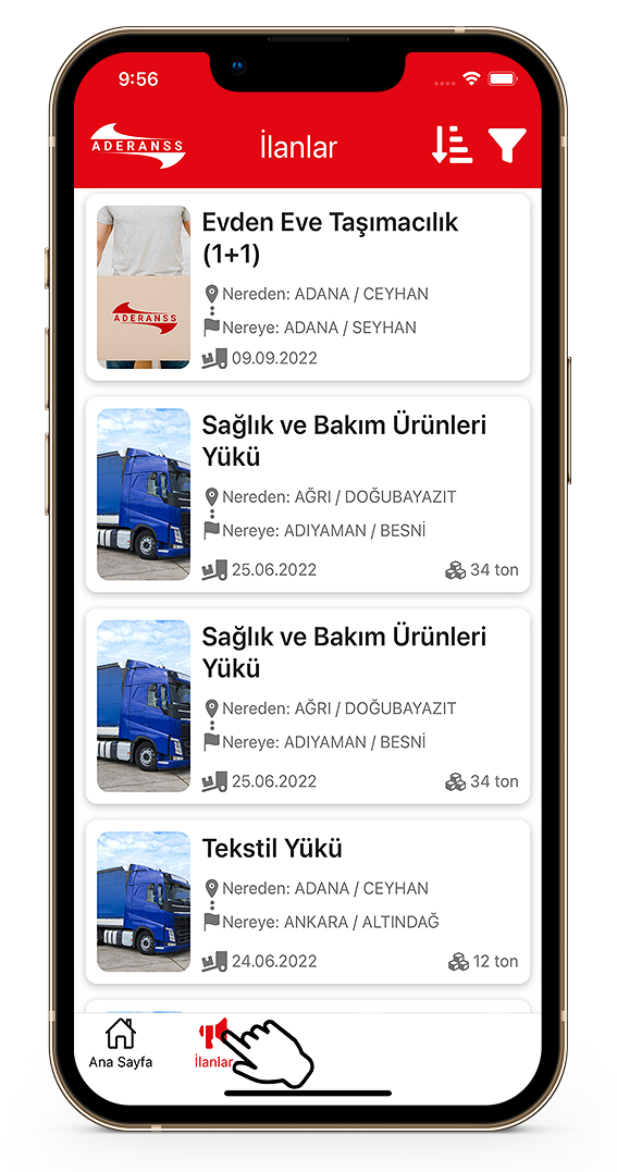 Aderanss mobil uygulaması ile İş Makinası, Lojistik, Ev Ofis taşımacılığı ihtiyaçlarınıza yönelik ilanlar oluşturarak çözüm sağlayıcıların sizlere kolayca ulaşmalarını sağlayabilirsiniz. Ayrıca halihazırda bu sektörlere çözüm sağlayıcı durumdaysanız, çok kolay bir şekilde var olan ilanlar ile sektör ihtiyaçlarına çözüm sağlayıcı olabilirsiniz. Tüm detayları sizler için hazırladık.